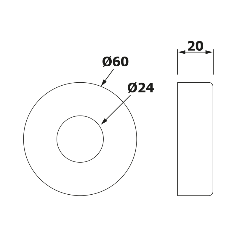 Rozeta 60/24 mm, výška 20 mm, chrom, pár