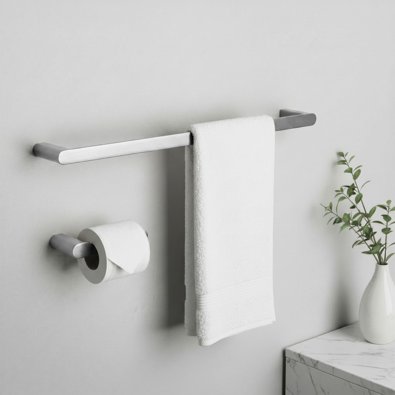 Sada koupelnových doplňků Rio je dokonalým spojením odolnosti, funkčnosti a elegantního designu. Součástí sady je podlouhý věšák na ručník, držák na toaletní papír a dva háčky, které tvoří jednotný a estetický celek do každé moderní koupelny. Vyrobené z vysoce kvalitního kovu, doplňky jsou pevné, odolné proti vlhkosti a mechanickému poškození. Díky montáži na šrouby zajišťují stabilitu a bezpečné uchycení i při častém používání. Matná černá povrchová úprava dodává elegantní vzhled a skvěle ladí s moderními koupelnami v industriálním nebo minimalistickém stylu. Sada Rio je ideální volbou pro ty, kteří ocení praktické a moderní koupelnové doplňky. Minimalistický design a precizní zpracování dělají z tohoto kompletu skvělý doplněk do klasických i odvážných interiérů.