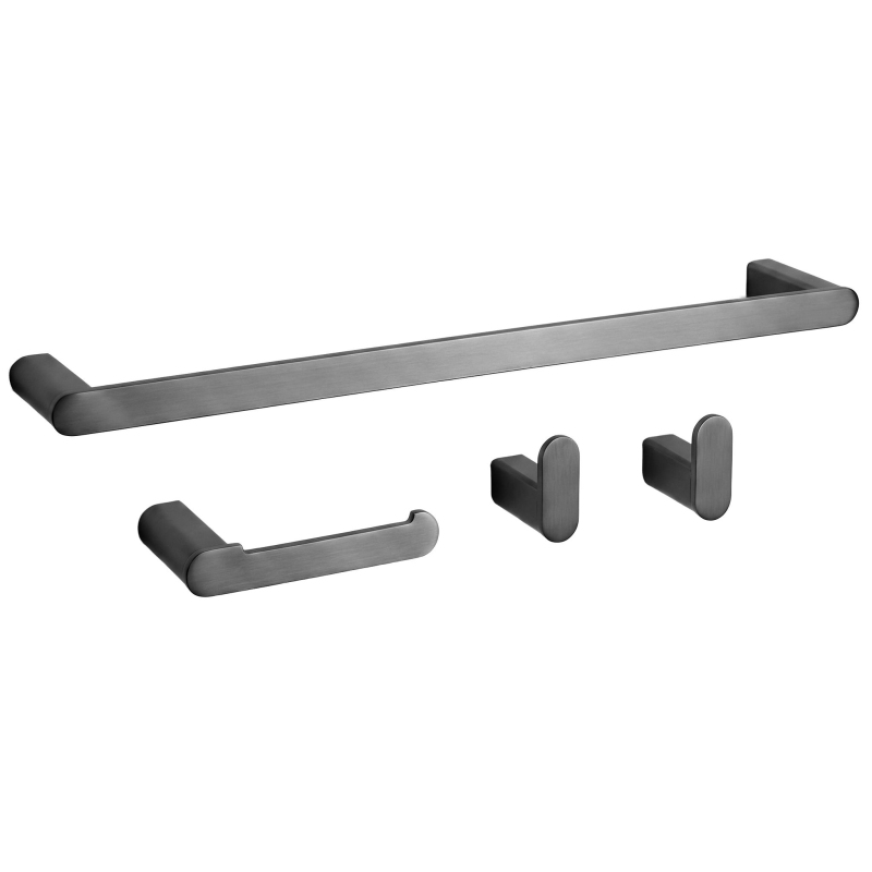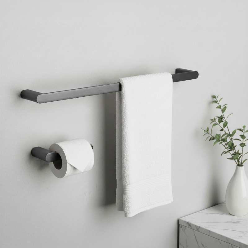 Sada koupelnových doplňků Rio je dokonalým spojením odolnosti, funkčnosti a elegantního designu. Součástí sady je podlouhý věšák na ručník, držák na toaletní papír a dva háčky, které tvoří jednotný a estetický celek do každé moderní koupelny. Vyrobené z vysoce kvalitního kovu, doplňky jsou pevné, odolné proti vlhkosti a mechanickému poškození. Díky montáži na šrouby zajišťují stabilitu a bezpečné uchycení i při častém používání. Matná černá povrchová úprava dodává elegantní vzhled a skvěle ladí s moderními koupelnami v industriálním nebo minimalistickém stylu. Sada Rio je ideální volbou pro ty, kteří ocení praktické a moderní koupelnové doplňky. Minimalistický design a precizní zpracování dělají z tohoto kompletu skvělý doplněk do klasických i odvážných interiérů.