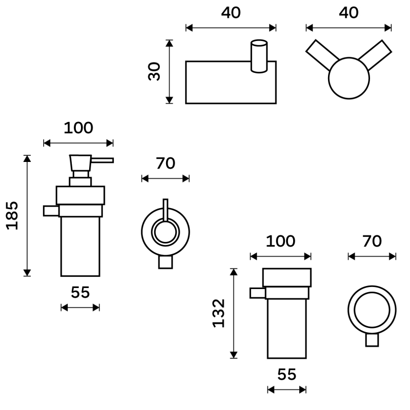 Sada nástěnných koupelnových doplňků - dávkovač mýdla, držák kartáčků, dvojháček na ručníky je skvělým doplňkem do koupelny. Tato sada koupelnových doplňků obsahuje následující výrobky NIMCO ze série Bormo černá: