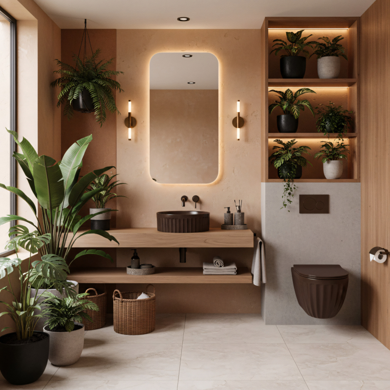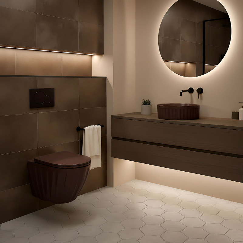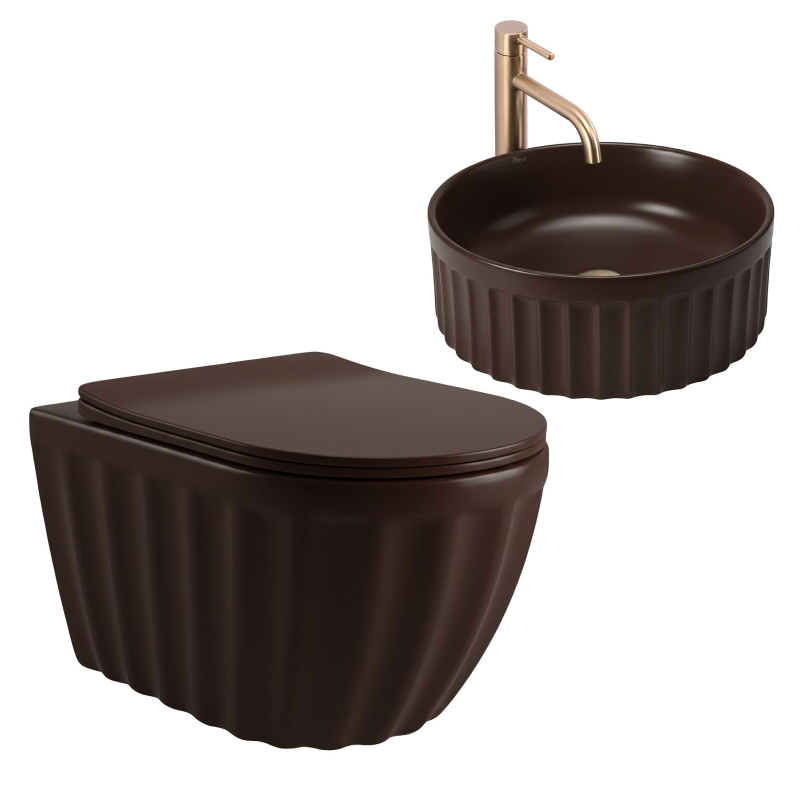 Sada: Závěsná WC mísa + Umyvadlo na desku Rea Duo Espresso Matt