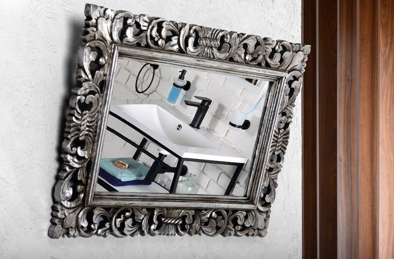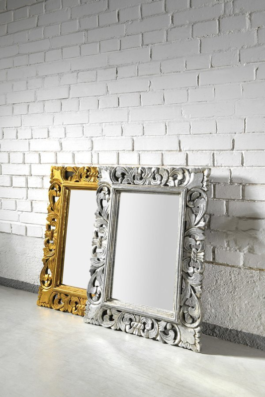 SAMBLUNG zrcadlo ve vyřezávaném rámu 60x80cm, stříbrná IN115