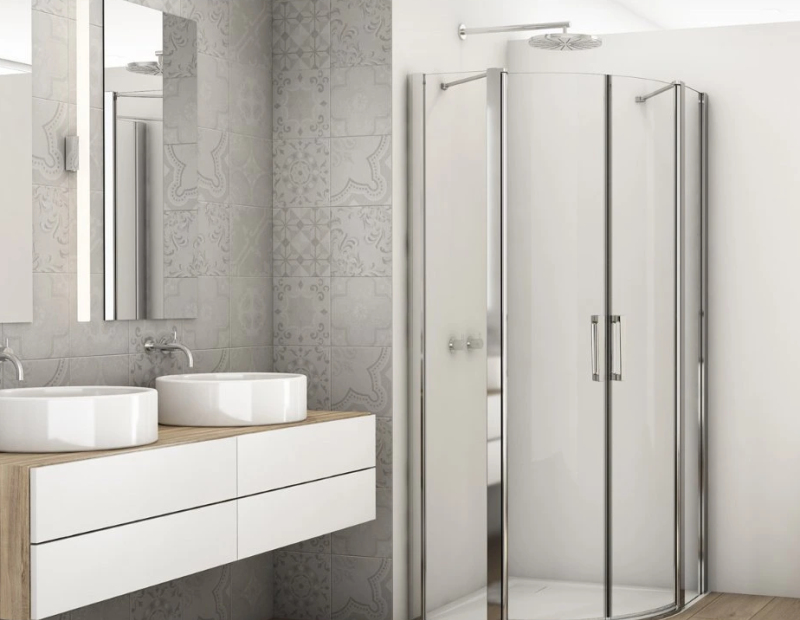 RONAL DIVERA Čtvrtkruh s dvoukřídlými dveřmi aluchrom čiré D22ERB551105007