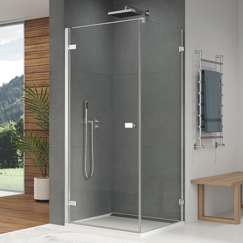 Boční stěna od SanSwiss je dodávána se stabilizační vzpěrou pro zajištění optimální stability. 6mm bezpečnostní sklo je vybaveno antiplakovou úpravou skla Aquaperle..