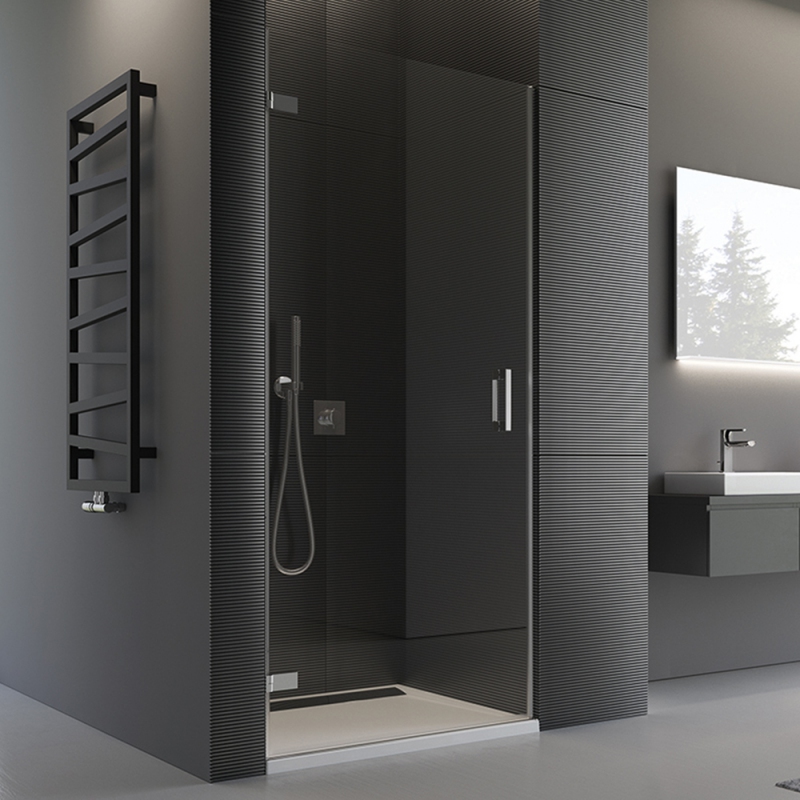 Bezrámová sprchová zástěna od společnosti SanSwiss splňuje vysoké nároky na design a individuální řešení koupelny. Kvalitní materiály jako masivní chromované panty (na vnitřní straně skla zapuštěné), 8mm bezpečnostní sklo, designové madlo. Antiplaková úprava skla AQUAPERLE pro snadné čištění. 5mm aluchromová prahová lišta. Sprchové dveře se otevírají ven. Sprchové dveře lze kombinovat s boční stěnou s vyrovnávacím profilem PUDT2P nebo s boční stěnou s L-kováním PURDT2 (na fotografii). Tuto sprchovou zástěnu je možné vyrobit ve verzi PURmax - až do výšky 2,5 m - za příplatek. Možné je i umístění v nice..