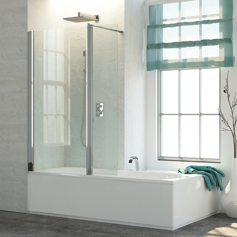 Montážní set s krátkou otočnou stěnou ve 180°, standardní profil + krátká otočná stěna šířky 400 mm. Délka stabilizační / stropní vzpěry 1500 mm. Maximální výška stropu pro kotvení je 2900 mm. Montážní set je určen pro kombinaci s pevnou vanovou zástěnou TOPV..