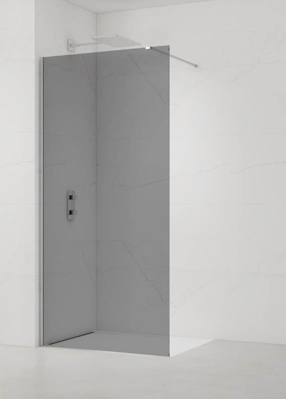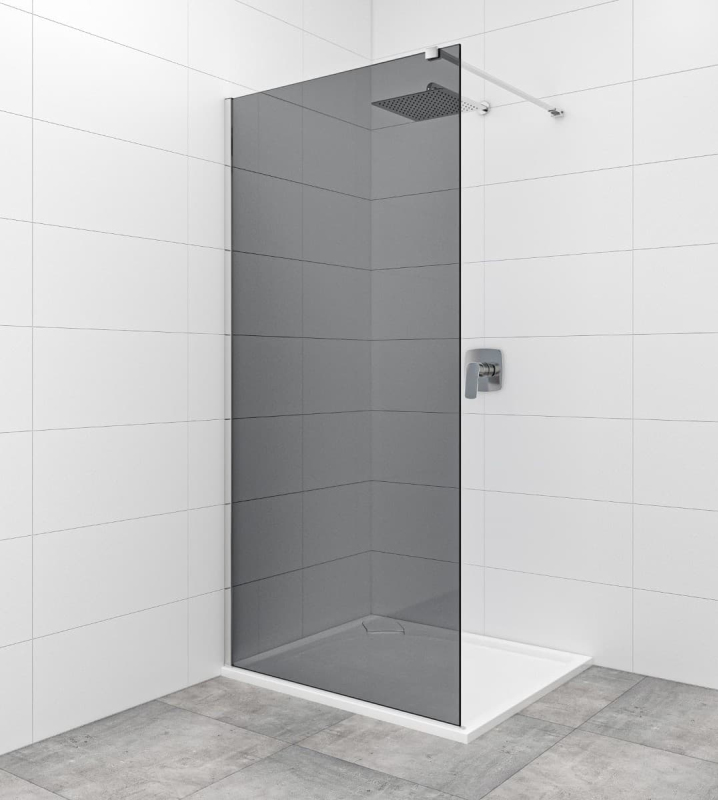 Tato zástěna je ideální volbou díky neprůhlednému sklu s kouřovým efektem. Profily jsou v lesklém chromu, které jsou z hliníku. Součástí zástěny jsou profily a zavětrování, tedy není potřeba již nic dalšího dokupovat. Sprchovou zástěnu lze instalovat na sprchovou vaničku i na dlažbu v kombinaci se sprchovým žlabem. Sklo je opatřeno povrchovou úpravou Easy Clean - usnadňuje čištění a zabraňuje usazování vodního kamene.