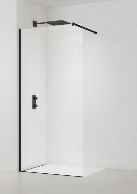 Balíček SATBWI90PRC obsahuje sprchovou zástěnu s extrémně odolným sklem 8 mm o šířce 87cm (SIKOWI90), boční profil se spodní lištou a montážním balíčkem v černém provedení (SIKOWIPROFILC) a také upevňovací rameno v černém provedení o nastavitelné délce až do 120 cm (SIKOZAV1C). Balíček přináší všechny potřebné komponenty k sestavení sprchového koutu typu walk-in.