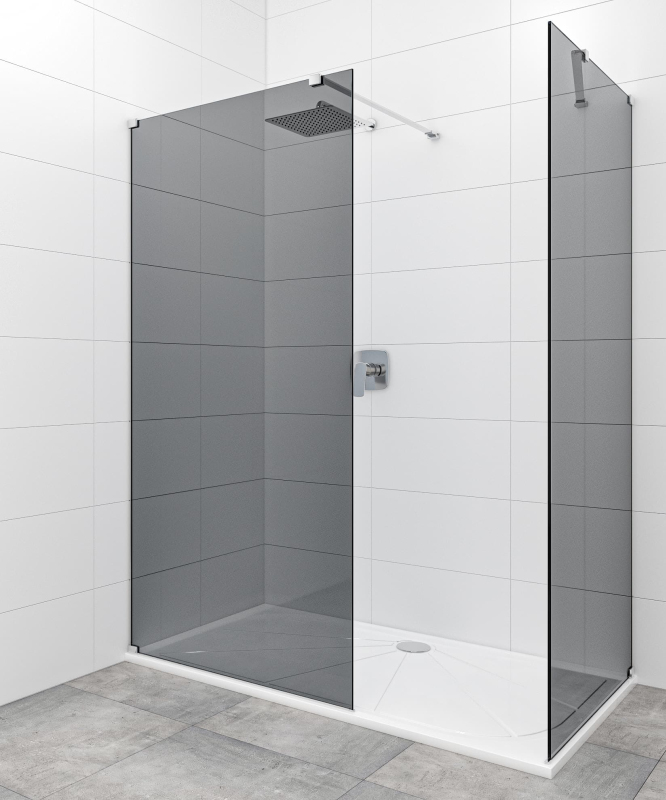 Sprchová zástěna walk-in s panty a zavětrováním v lesklém chromu, výplň je z neprůhledného skla a má dekor kouřového efektu. Produkt je opatřen povrchovou úpravou Easy Clean, která usnadňuje čistění a minimalizuje usazování vodního kamene. Nelze otevřít - pevný systém. Levé i pravé provedení - přizpůsobíte si při montáži.