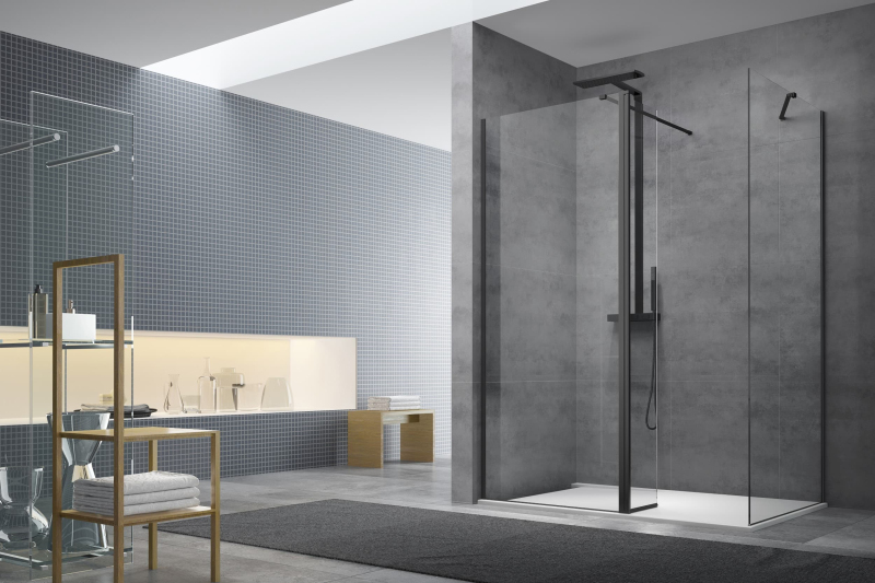 Sprchová zástěna walk-in s profily, zavětrováním a otočnou stěnou v černé barvě, výplň je z čirého skla bez dekoru. Produkt je opatřen povrchovou úpravou Easy Clean, která usnadňuje čistění a minimalizuje usazování vodního kamene. Nelze otevřít - pevný systém. Levá i pravá orientace.
