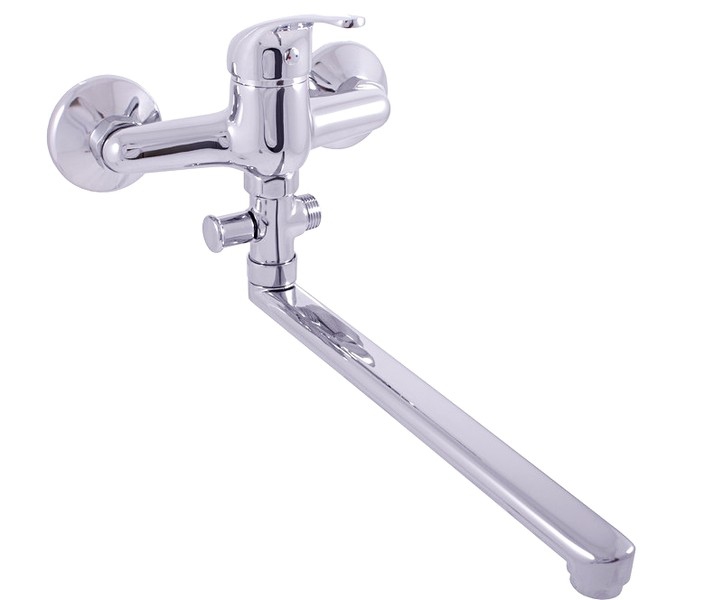 Vodovodní baterie pro vanu a umyvadlo nástěnná s plochým ramínkem.