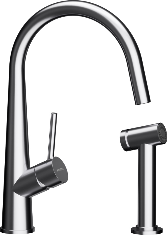 Kuchyňská baterie SCHOCK Conos Pro S z masivní nerezové oceli nabízí profesionální design s vysokým obloukovým výtokem a otočným ramenem 360° pro maximální flexibilitu při práci u dřezu. Elegantní provedení, kvalitní keramická kartuše a odolný materiál zajišťují dlouhou životnost a komfortní používání.