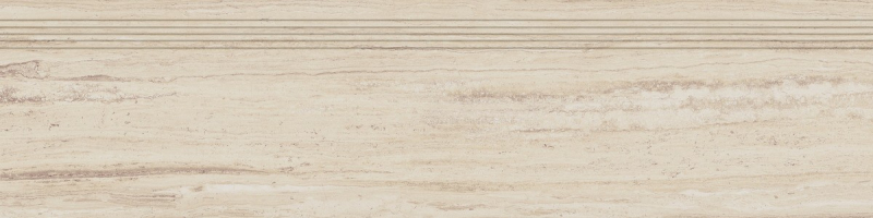 Mrazuvzdorná a rektifikovaná schodovka v béžové barvě v imitaci mramoru o rozměru 29,8x119,8 cm a tloušťce 10 mm s matným povrchem. Vhodné do interiéru i exteriéru. S velkými rozdíly v odstínu barev, struktury povrchu a kresby. Vysoce odolné proti opotřebení. Vhodné do hal hotelů, obchodů a garáže.