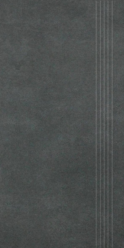 Rektifikované. Mrazuvzdorné. Schodovka v černé barvě a v betonovém designu o rozměru 29,8x59,8 cm a tloušťce 9 mm s reliéfnám povrchem. Vhodné do interiéru i exteriéru. S velkými rozdíly v odstínu barev, struktury povrchu a kresby. Vhodné do kuchyně, kanceláří, na balkóny.