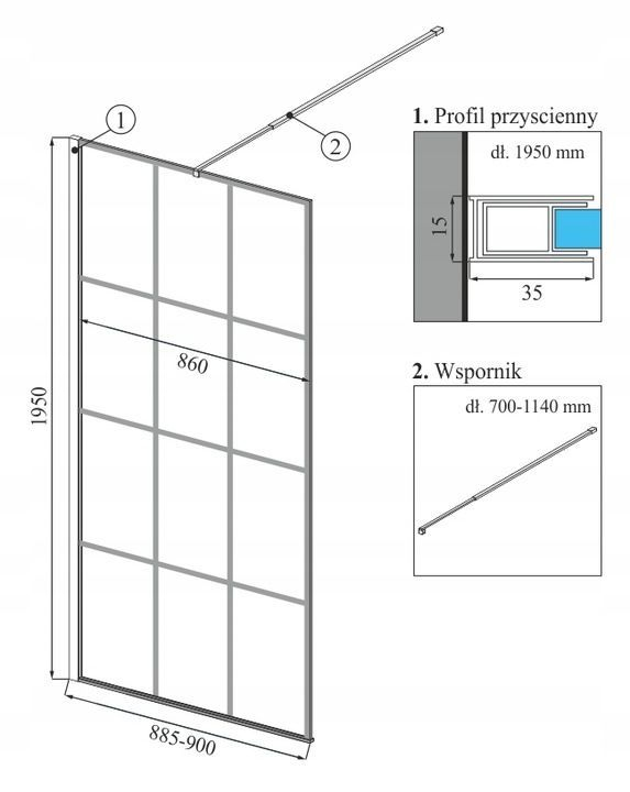 ŚCIANKA CALANI PRYSZNICOWA SOLEO 90