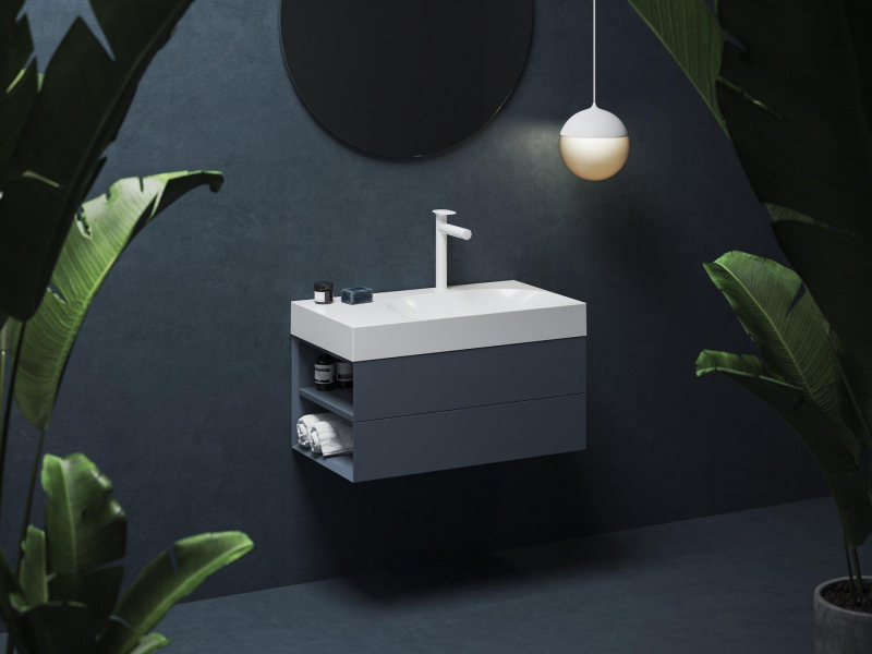 Skříňka pod umyvadlo SD Lite v provedení Deepsea Blue. Levá varianta.