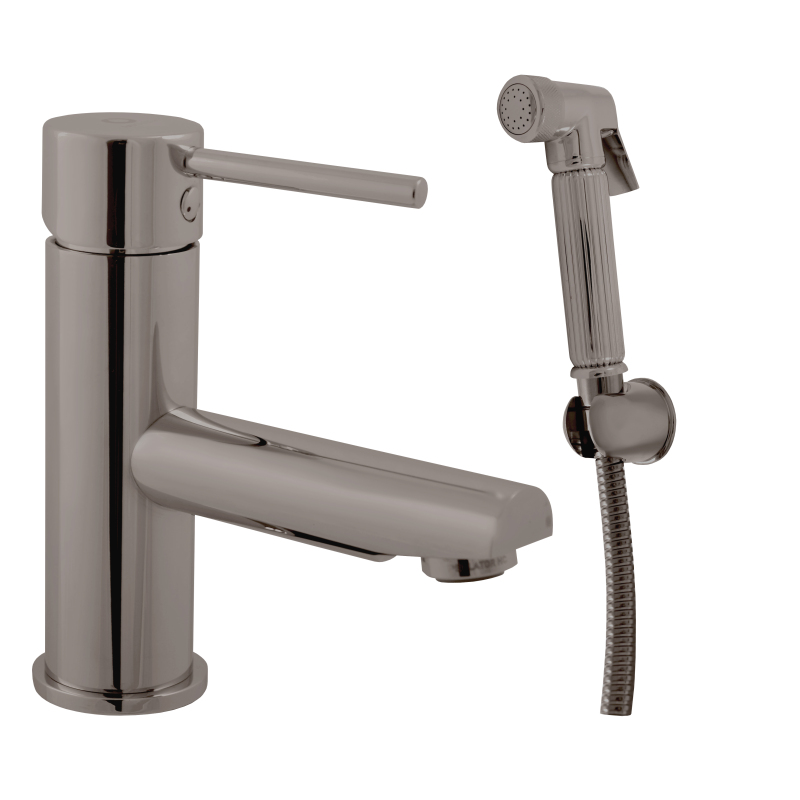 Vodovodní baterie umyvadlová/bidetová stojánková se sprškou bez otvírání odpadu.
