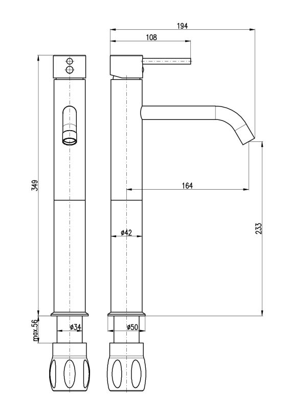 Vodovodní baterie umyvadlová stojánková, vysoká pro umyvadla na desku.