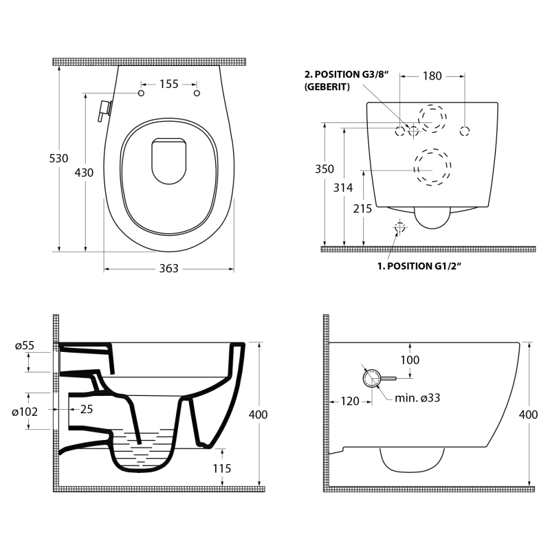 | Ostatní | Skryté uchycení, CleanWash bidetová sprška |