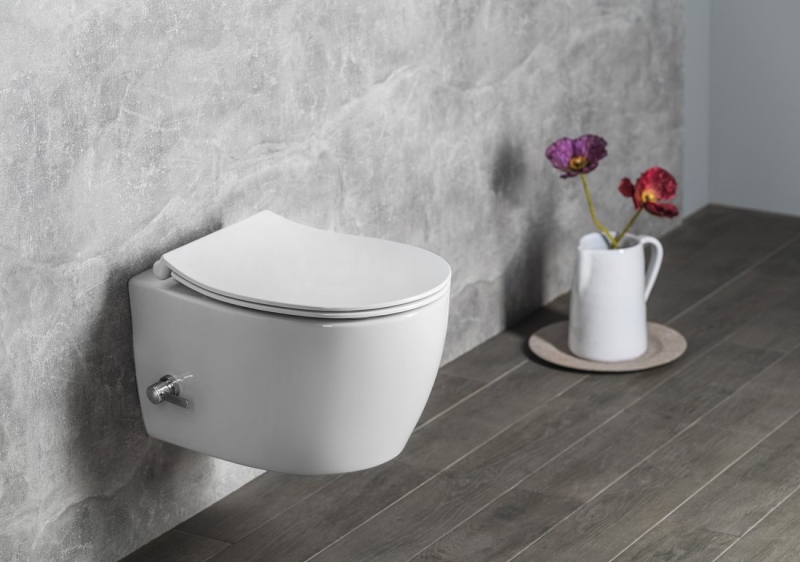 SENTIMENTI CLEANWASH závěsná WC mísa, integrovaný ventil a bidet. sprška, Rimless, 36x51cm, bílá