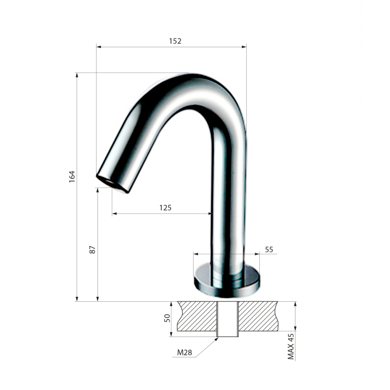 Senzorová stojánková baterie s regulací teploty, 6V DC (4xAA), chrom
