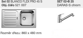 SET 02-B 26 Blanco FLEX Pro 45 S Nerez přírodní lesk + Daras - S chrom