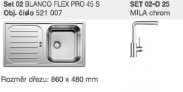 SET 02-D 26 Blanco FLEX Pro 45 S Nerez přírodní lesk+ Mila chrom