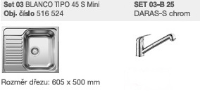 SET 03-B 26 Tipo 45 S Mini přírodní lesk + Daras -S chrom