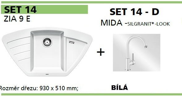 Blanco SET 14-D MIDA ZIA 9 E granitový dřez, bílá a MIDA dřezová baterie, bílá
