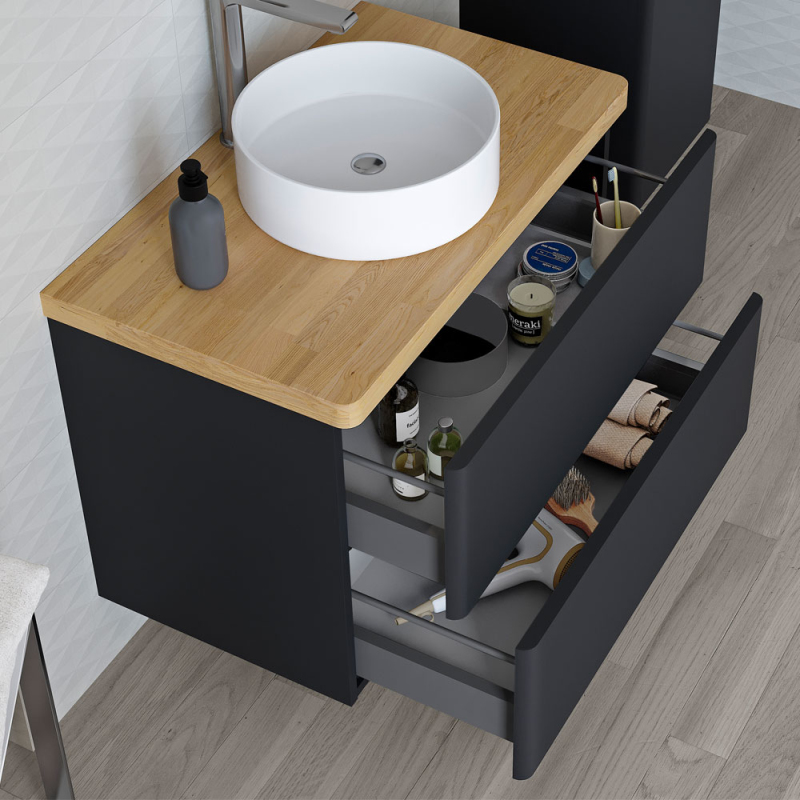 Stylová deska z masivního dubu je navržena speciálně pro koupelnové skříňky ze série Siena. Přírodní dřevěný materiál dodává koupelně hřejivý a moderní vzhled, který dokonale ladí s ostatními prvky série.