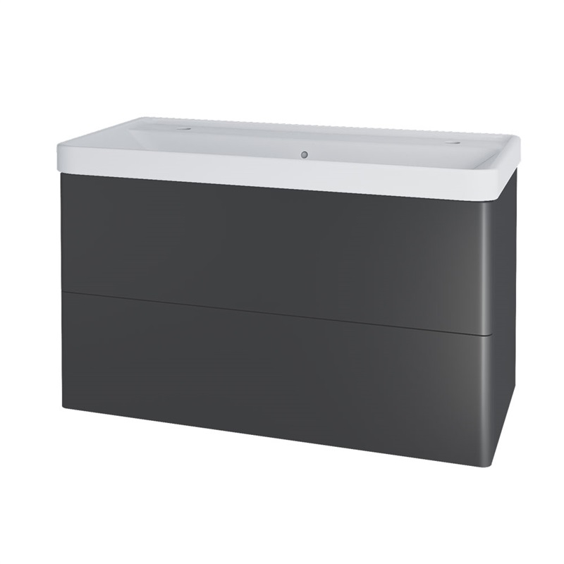 Siena, koupelnová skříňka s keramickym umyvadlem 1010x618x475 mm, spodní, 2 zásuvky, push-open systém, antracit mat. Umyvadlo pro 2 baterie a 1 výpusť.. Zobrazit více