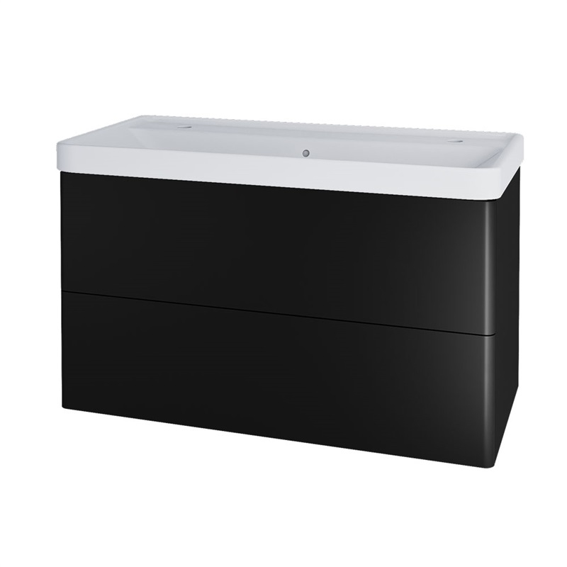 Siena, koupelnová skříňka s keramickym umyvadlem 1010x618x475 mm, spodní, 2 zásuvky, push-open systém, černá mat. Umyvadlo pro 2 baterie a 1 výpusť.. Zobrazit více