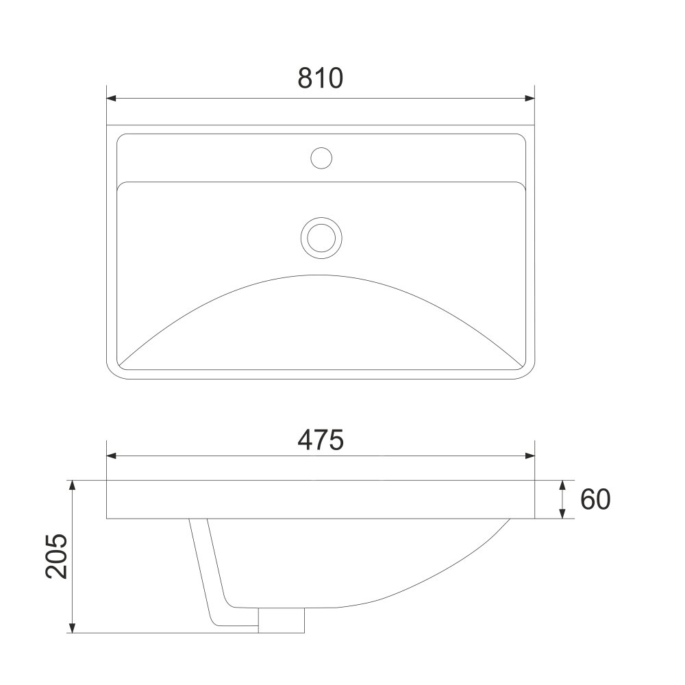 Součástí skříňky je umyvadlo (keramické nebo z litého mramoru), se dvěma otvory pro baterii a jednou výpustí. Skříňka má zásuvky s pojezdy Hettich a push-to-open systém, který zajišťuje tiché a komfortní dovírání.