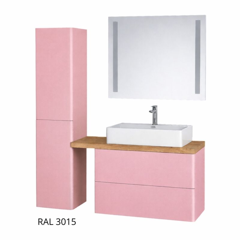 Celolakované provedení zahrnuje čela i boční stěny zásuvek pro jednolitý vzhled z každého úhlu. Možnost volby keramického nebo litého umyvadla s dvěma otvory pro baterie a jednou výpustí doplňuje moderní design.