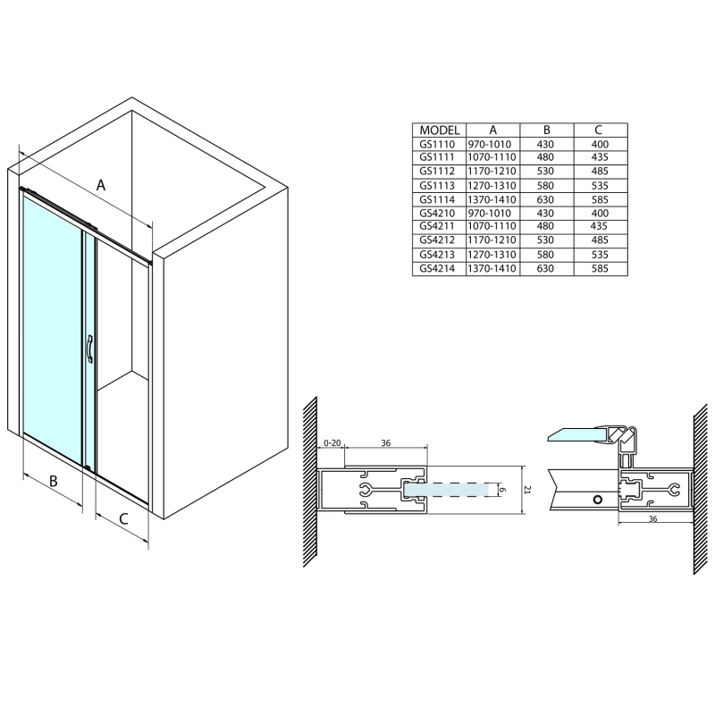 SIGMA SIMPLY sprchové dveře posuvné 1400 mm, čiré sklo GS1114