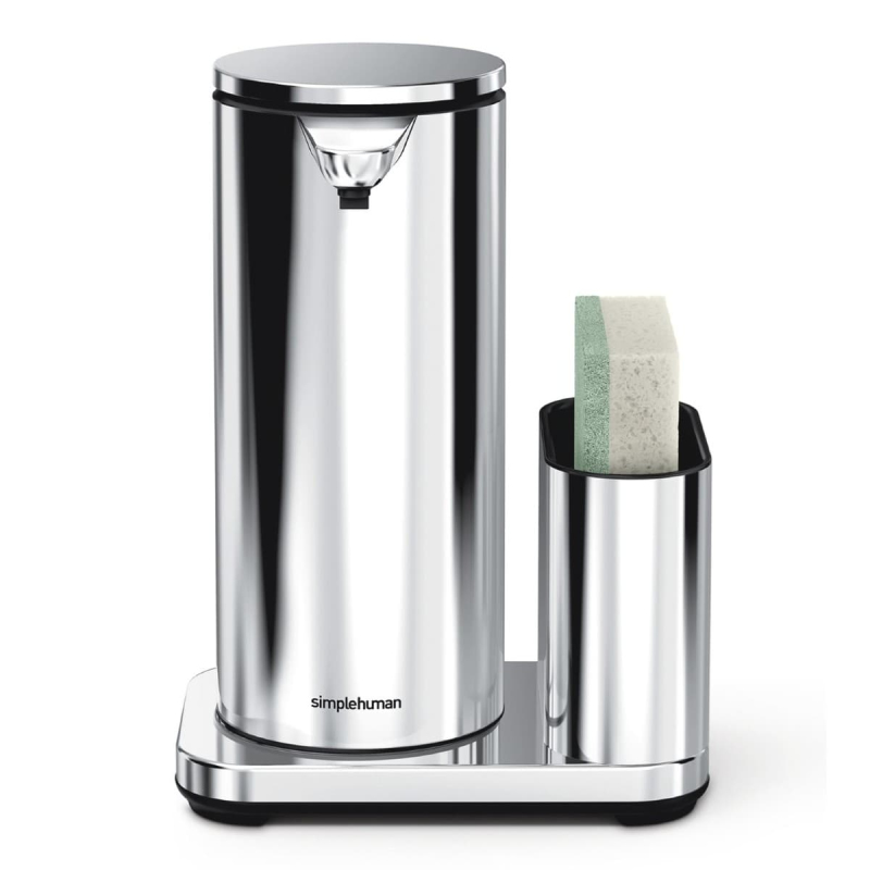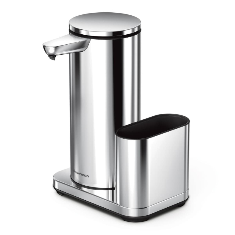 Simplehuman bezdotykový dávkovač mýdla – 414 ml + držák houbičky lesklá nerez dobíjecí ST1091