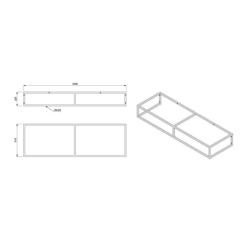 SKA konzole pod umyvadlo/desku 160x22x51cm, černá mat