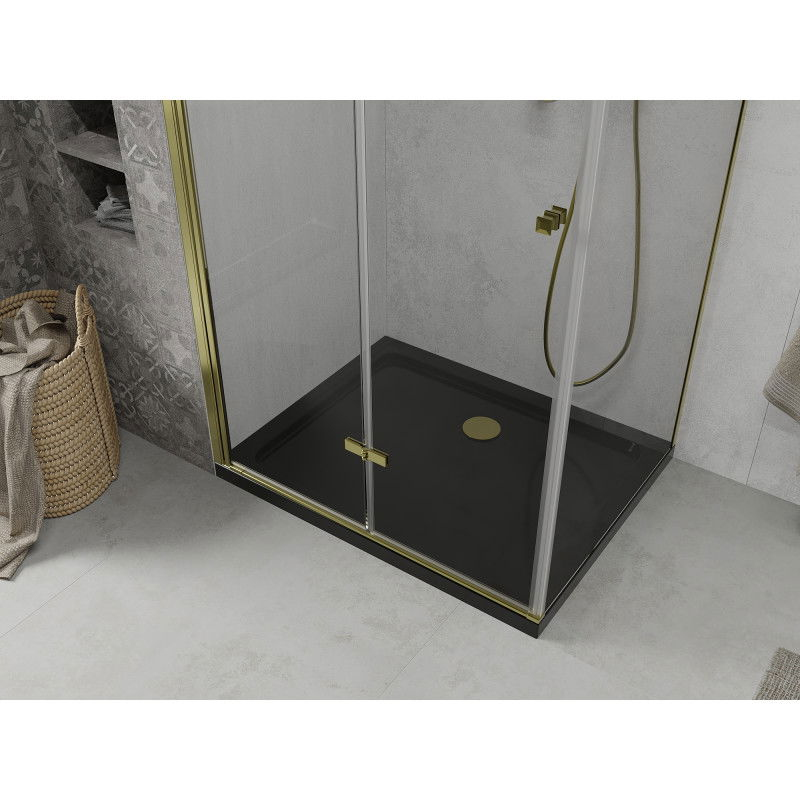 Skládací sprchový kout Mexen Lima 100 x 90 cm, průhledný, zlatý + plochá sprchová vanička, černá - 856-100-090-50-00-4070G