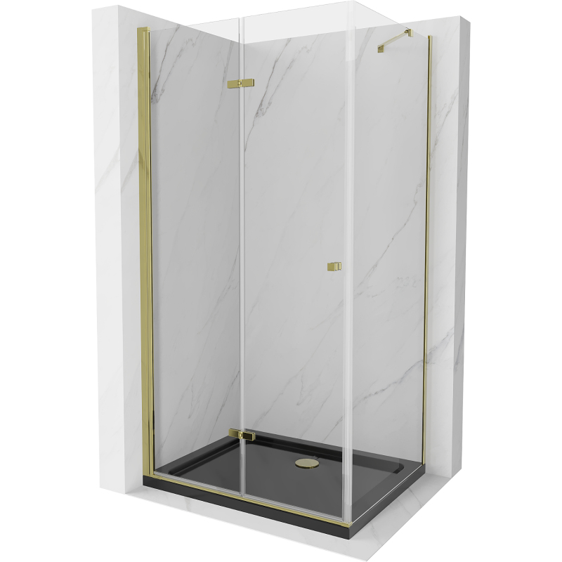 Skládací sprchový kout Mexen Lima 90 x 100 cm, průhledný, zlatý + plochá sprchová vanička, černá - 856-090-100-50-00-4070G