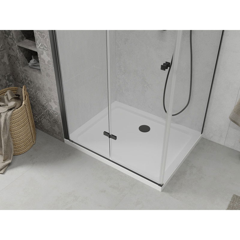 Skládací sprchový kout Mexen Lima 90 x 70 cm, průhledný, černý + Plochá sprchová vanička, bílá - 856-090-070-70-00-4010B