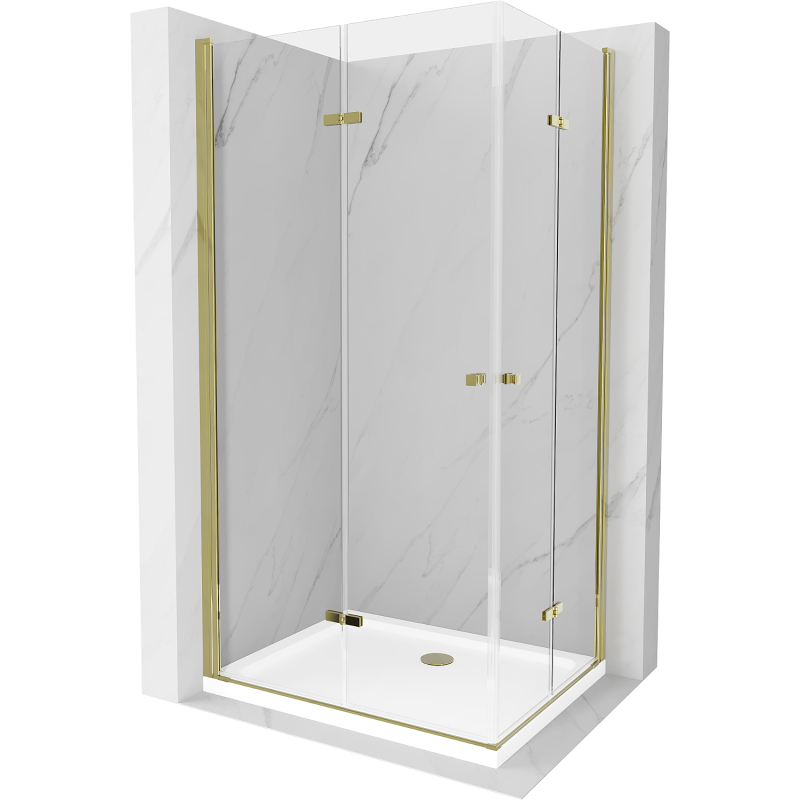 Skládací sprchový kout Mexen Lima Duo 90 x 80 cm, průhledný, zlatý + Plochá sprchová vanička - 856-090-080-50-02-4010G