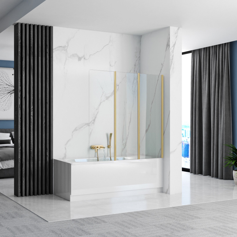 REA Agat-3 skládací vanová zástěna 120 broušená zlatá REA-W2501