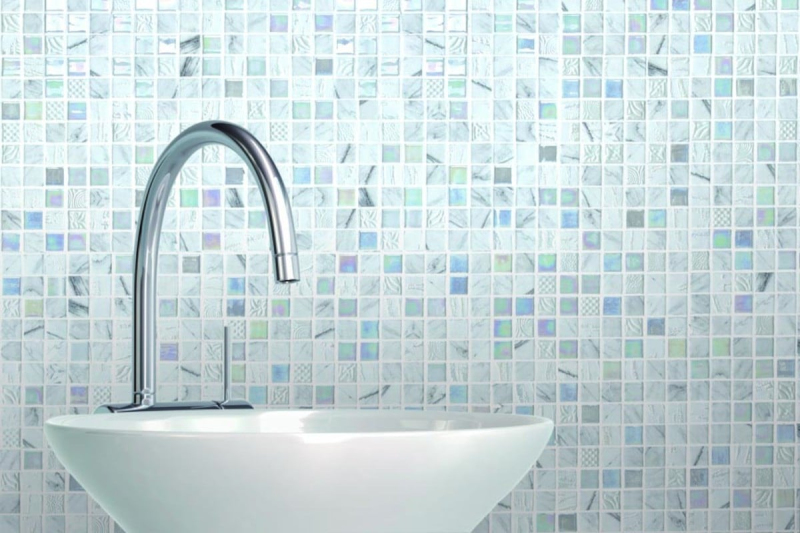 Mrazuvzdorné. Skleněná Mozaika v šedé barvě o rozměru 31,6x31,6 cm a tloušťce 4 mm s lesklým povrchem. Základní prvek ve tvaru čtverce o rozměru 2,5x2,5 cm