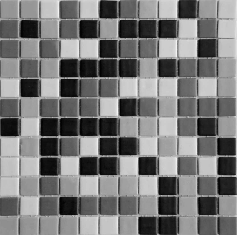 Mrazuvzdorné. Skleněná Mozaika v šedé barvě o rozměru 31,6x31,6 cm a tloušťce 4 mm s matným povrchem. Základní prvek ve tvaru čtverce o rozměru 2,5x2,5 cm