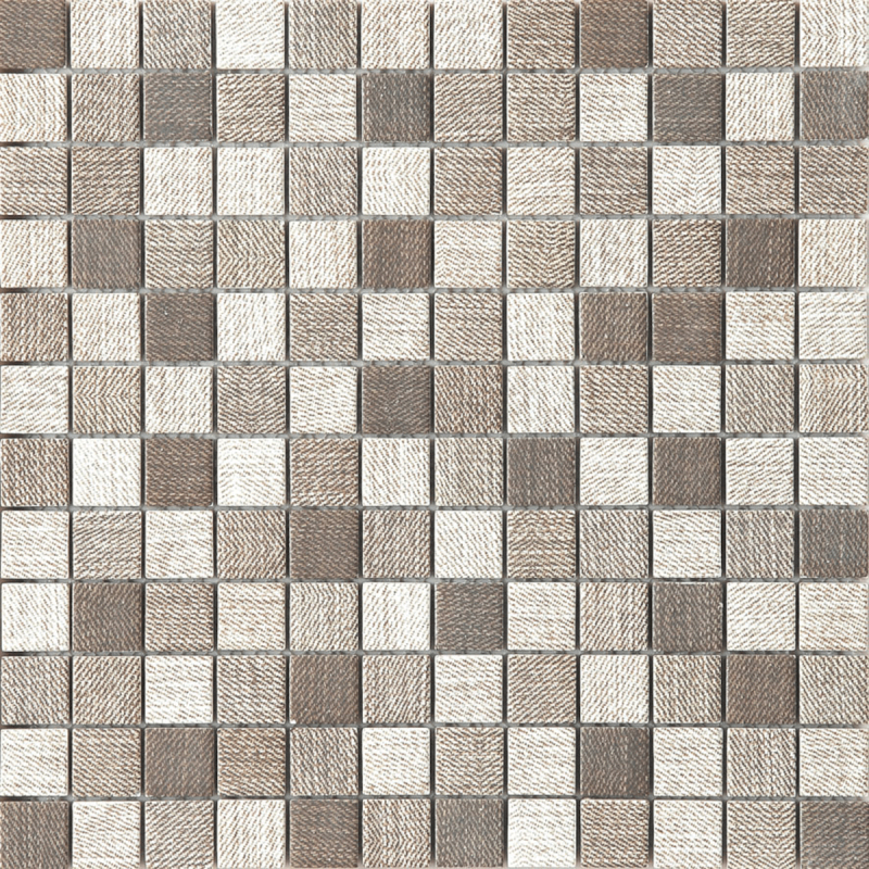 Skleněná mozaika v béžové barvě o rozměru 31x31 cm a tloušťce 6 mm s matným povrchem. Základní prvek ve tvaru čtverce o rozměru 2,3x2,3 cm.