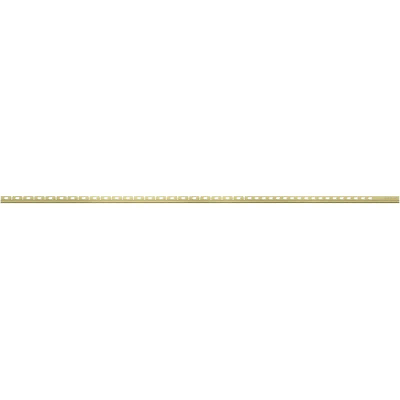 Specifikace produktu: Materiál: Nerezová ocel AISI 304 Délka: 180 cm Výška: 12-30 mm Povrchová úprava: Kartáčované zlato Strana: Levá Odolná vůči vlhkosti, korozi a mechanickému poškození Možnost svépomocí zkrátit pásek na požadovanou délku Maskuje nevzhledné povrchové úpravy dlaždic a chrání před vniknutím vody pod dlaždice Boční okraj pásku vytváří jednostranný sklon k liniovému odtoku bez nutnosti použití obálky Páska má prostor pro montáž sprchového koutu, což nejen zjednodušuje proces instalace, ale také umožňuje maskovat povrchovou úpravu silikonem
