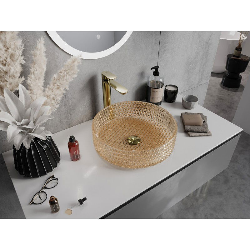 Skleněné umyvadlo Mexen Aura na desku 39 x 39 cm, růžové zlato - 24013968