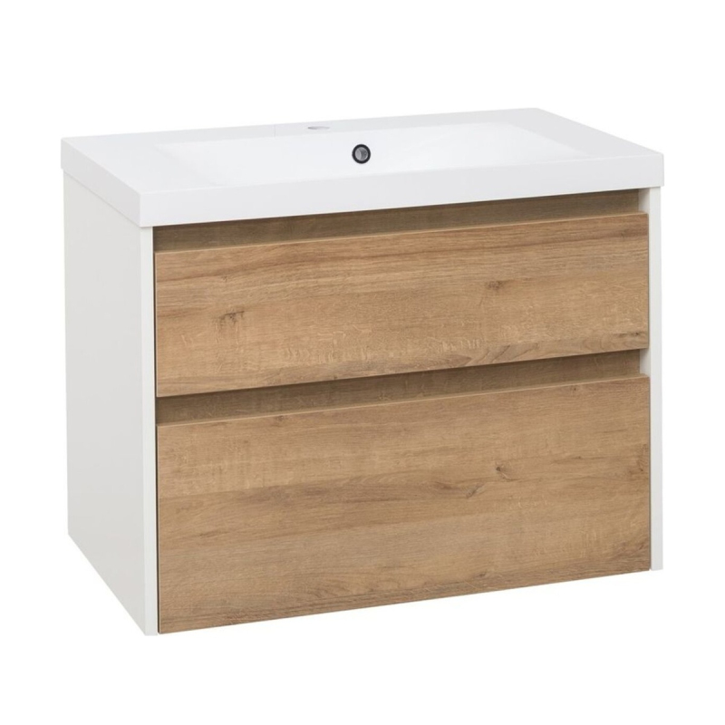 Skříňka EBS Duomo 81 s umyvadlem, bílá lesk/dub Riviera, DUOMO81K