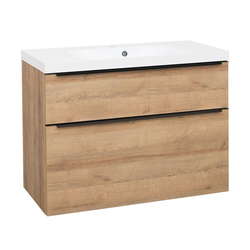 Skříňka EBS Nevio B 101 s umyvadlem, černý úchyt, dub Riviera, NEVIO101CD