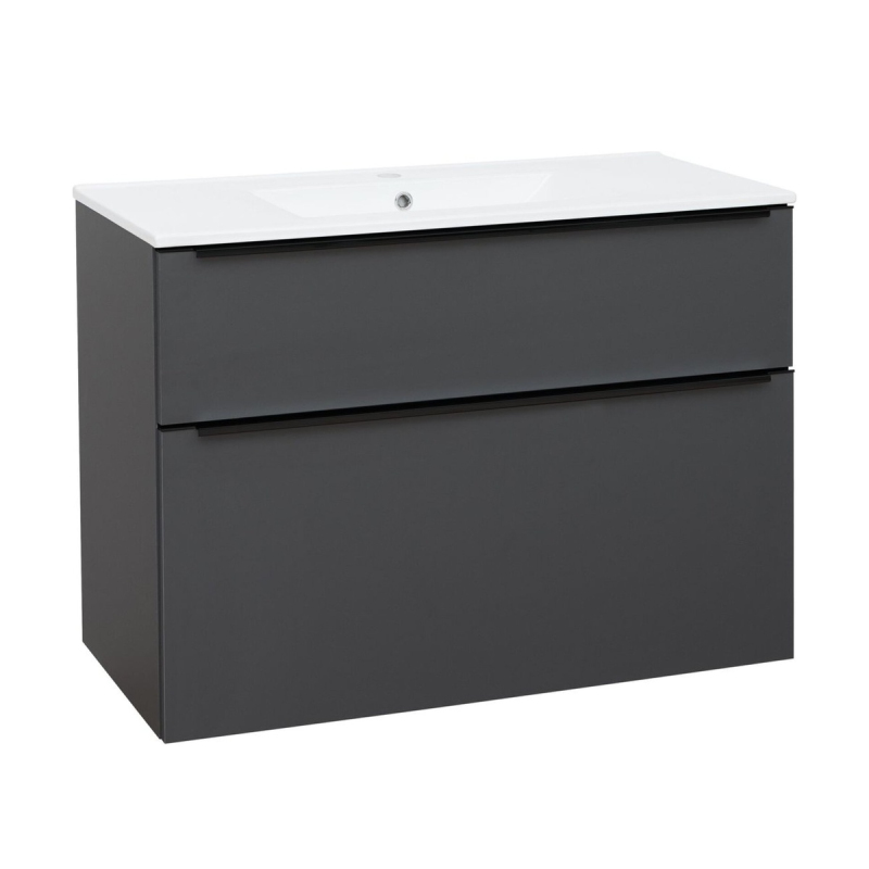 Skříňka EBS Nevio B 101 s umyvadlem slim, černý úchyt, antracit, NEVIOSL101CS